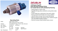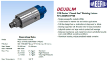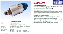 Voor doorvoeren van Deublin geschikt voor koelmiddel met 1 doorgang zijn de volgende parameters beschikbaar: